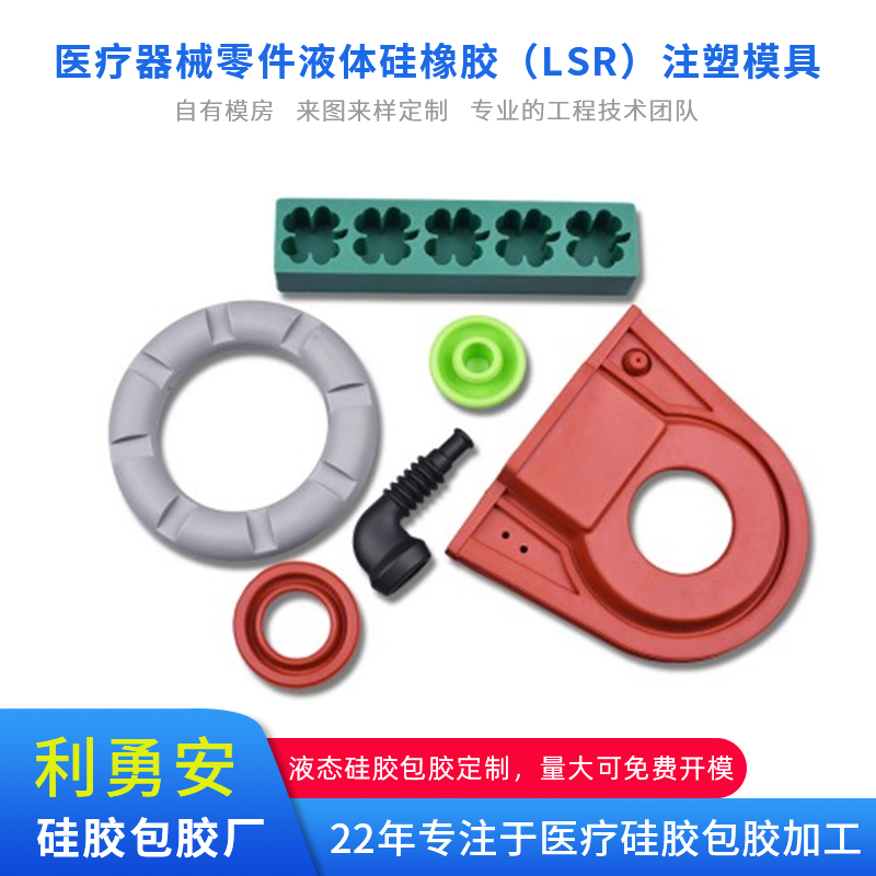 医疗器械零件液体硅橡胶 (LSR) 注塑模具 自有模房 来图来样定制 专业工程技术团队【产品介绍】液态硅胶包胶【产品工艺】硅胶模压工艺【产品材质】食品级硅胶